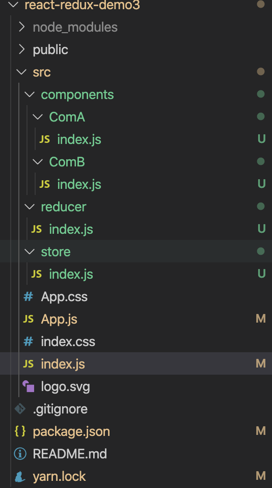 export default createStore(reducer)6. src 目录下 新建 components/ComA/index.js 与components/ComB/index.js