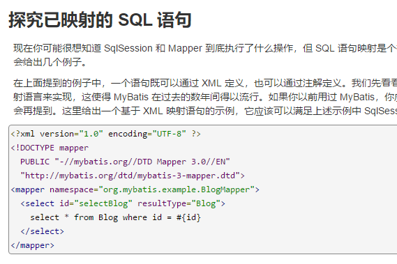 如何编辑创建好的StudentMapper.xml文件: 依旧是刚才的网址 找到下图所示段落 复制粘贴 再自行修改