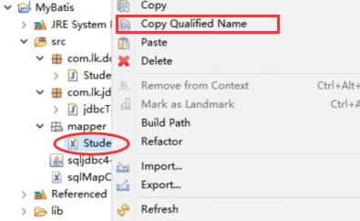 选中StudentMapper.xml →右键 Copy.... 后