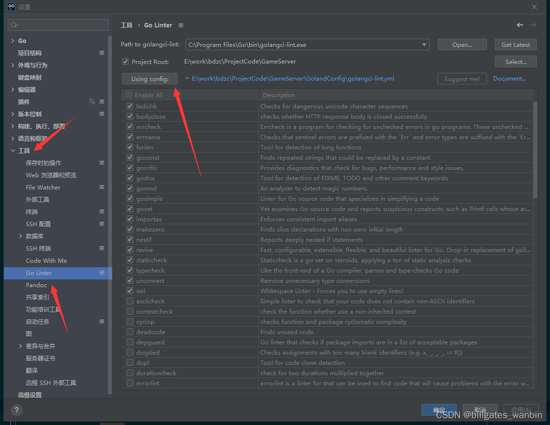 在 设置 -> 工具 -> Go Linter 中设置 配置文件的路径
