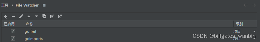 为了达到项目的代码规范化建议设置 go fmt 和 goimports 的 File Watcher ,有顺序