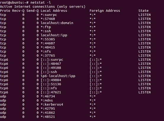 -l或–listening | 显示监控中的服务器的Socket。 |