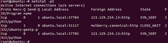 netstat -p 可以与其它开关一起使用,就可以添加 “PID/进程名称” 到 netstat 输出中,这样 debugging 的时候可以很方便的发现特定端口运行的程序。