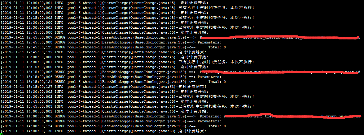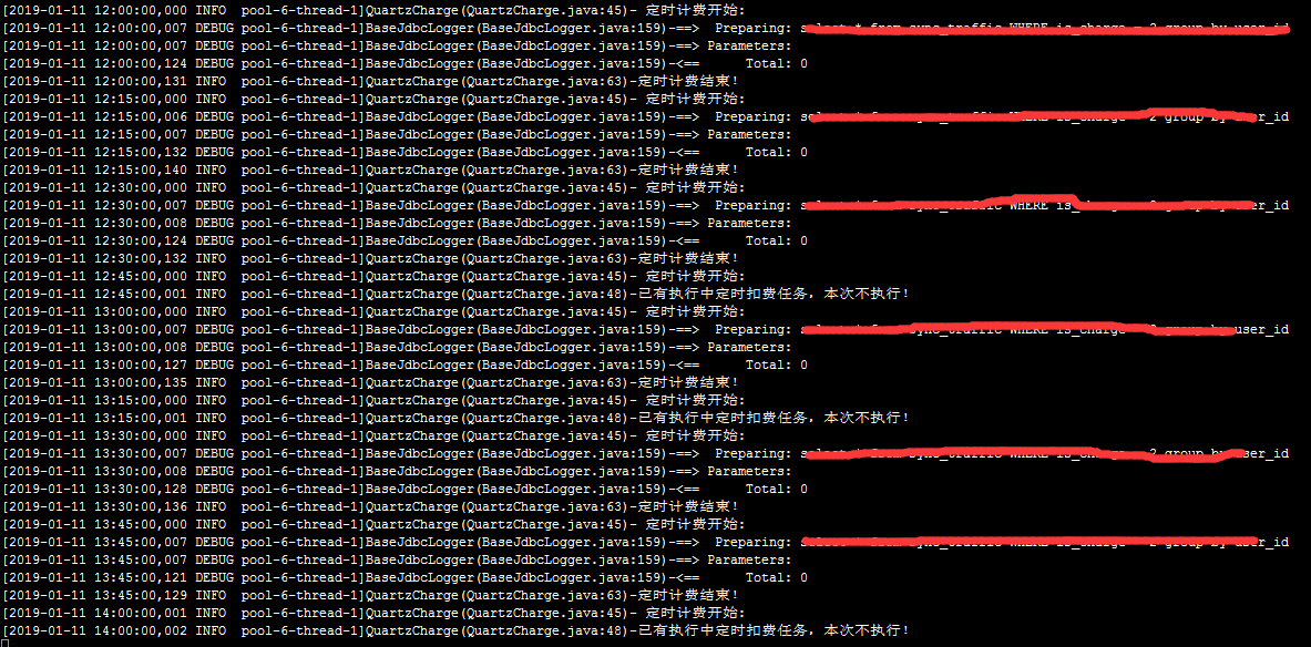 logger.info("已有执行中定时扣费任务,本次不执行!");