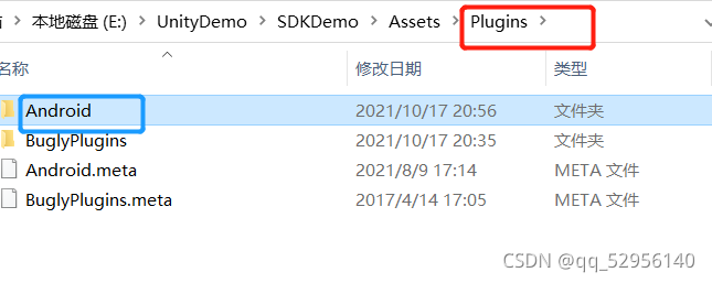 首先在你的Unity项目中的Plugin文件夹下创建一个目录,也就是Android文件夹