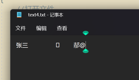 可以看到 用记事本打开 是读不出来的 因为是用二进制方式写入的