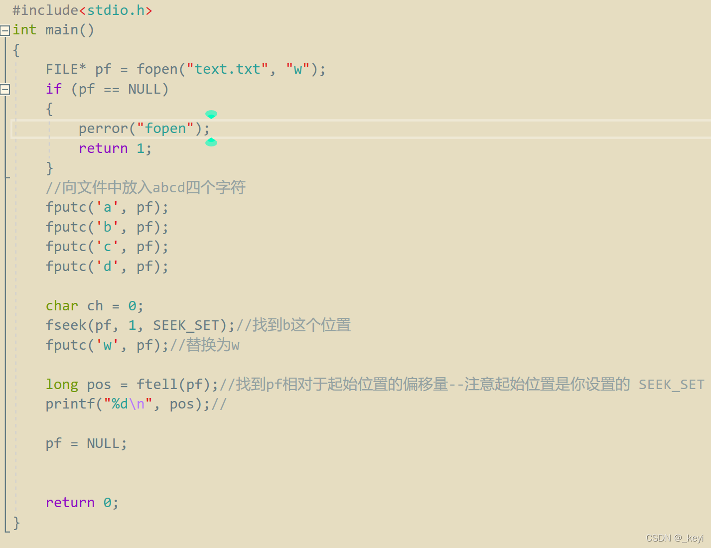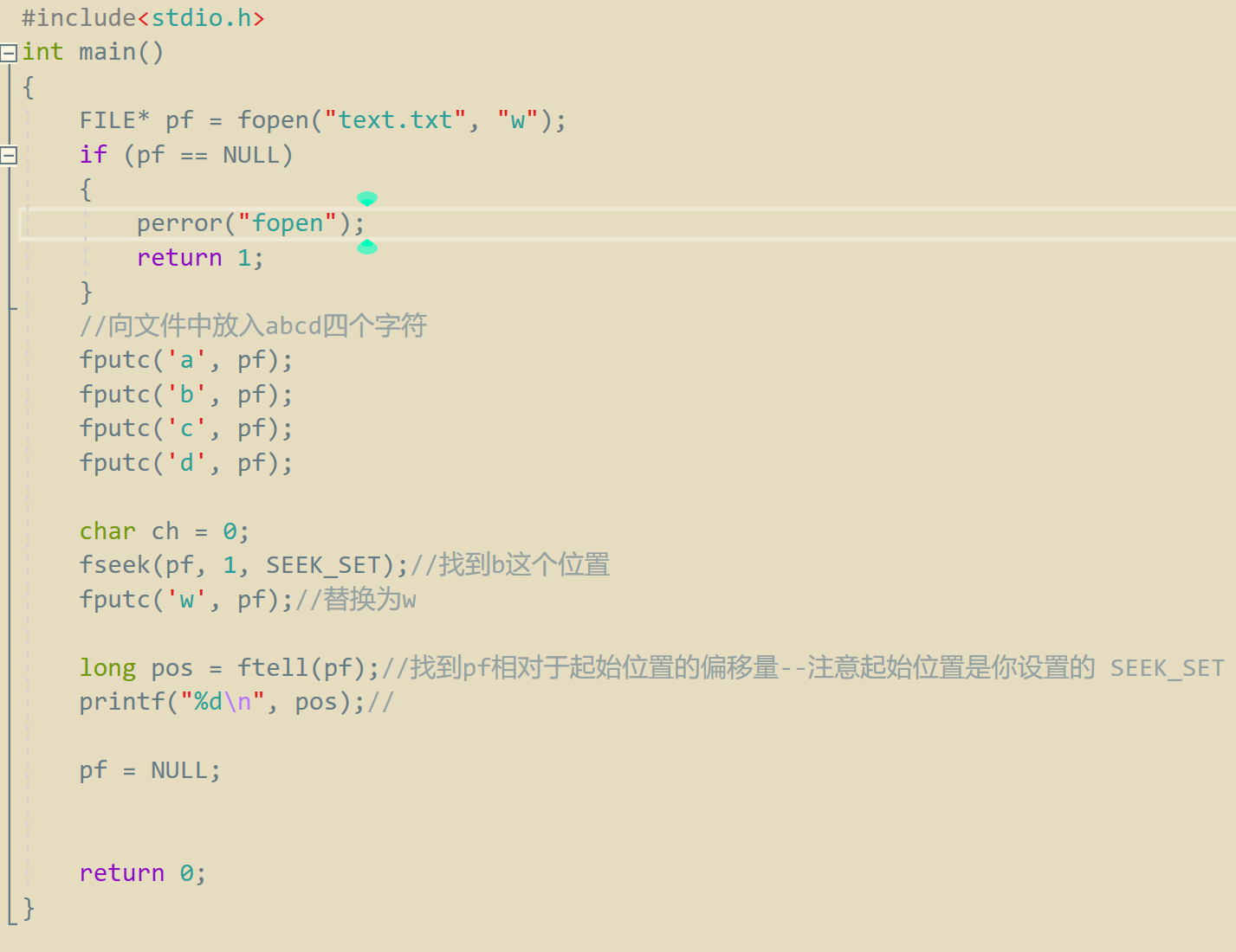 把b位置改为w之后 指针自动向后+1 所以现在文件指针指向c 相对于起始位置 偏移量为2