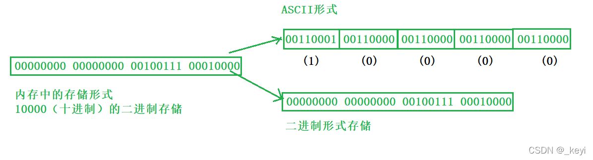 如有整数10000,如果以ASCII码的形式输出到磁盘,则磁盘中占用5个字节(每个字符一个字节),而