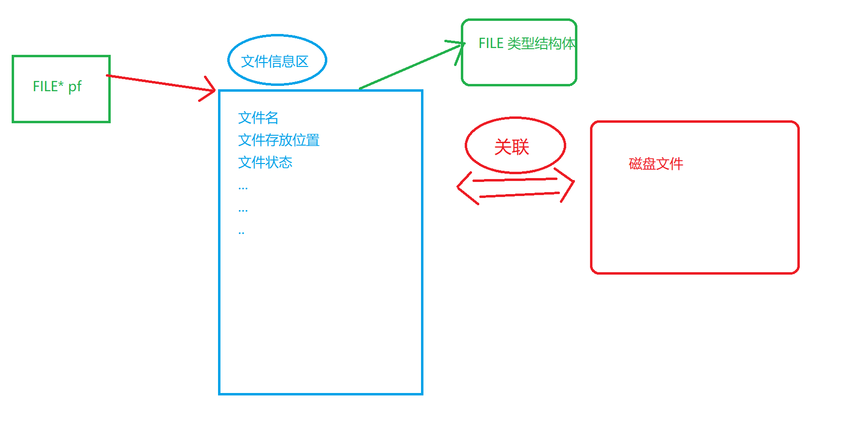 定义pf是一个指向FILE类型数据的指针变量。可以使pf指向某个文件的文件信息区(是一个结构体变量)。通过该文件信息区中的信息就能够访问该文件。也就是说,通过文件指针变量能够找到与他相关联的文件