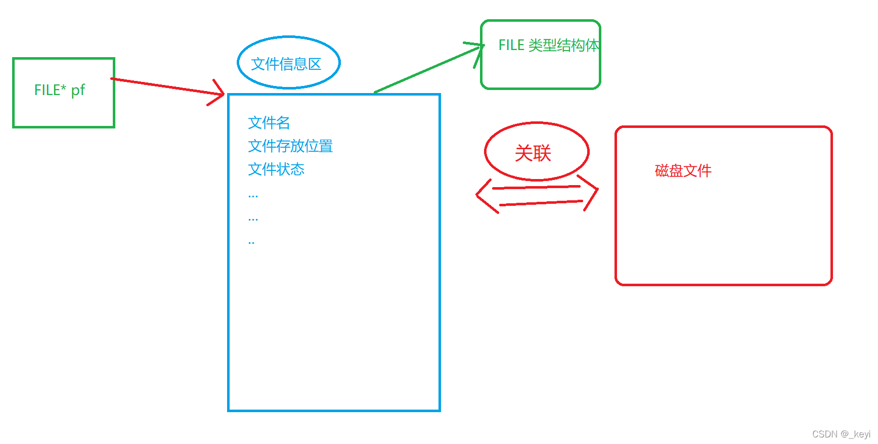 每一个被使用的文件都在内存中开辟了一个相应的文件信息区,用来存放文件的相关信息(例如文件的名字,文件状态以及文件当前的位置),这些信息是保存在一个结构体变量中的。该结构体类型是有声明的,取名为 FILE