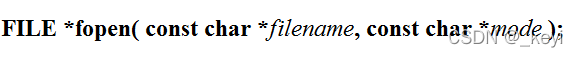 int flose(FILE* stream);fopen() 函数第一个参数是文件名的地址(字符串),第二个参数是文件的打开方式(也是字符串)