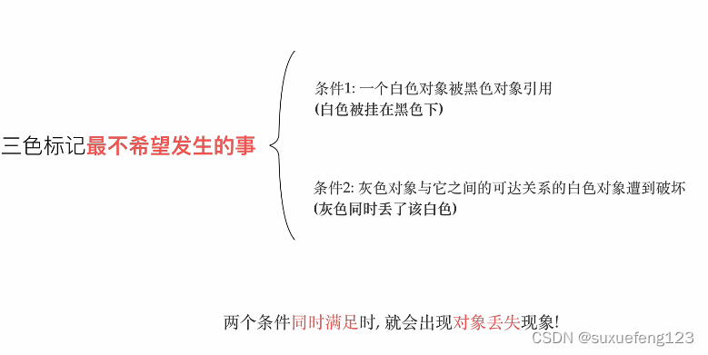 如果没有STW,发生上面的情况,会把引用的对象删除,造成数据混乱。