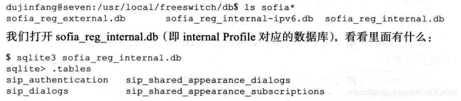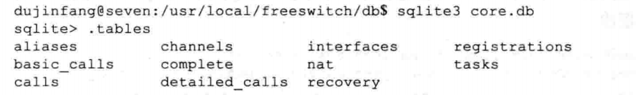 (2) 除核心数据库外,很多外部模块也都使用数据库存储数据。最典型的就是 mod sofia模块。mod sofia模块中的每一个 Profile都使用一个单独的数据库,如我们可以通过下面命令看到每个数据库: