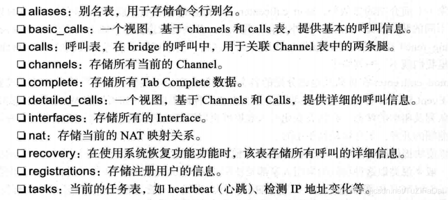 其中, sqlite3命令用于打开 Sqlite数据库。 tables命令会显示数据库中所有的表,各表的作用如下: