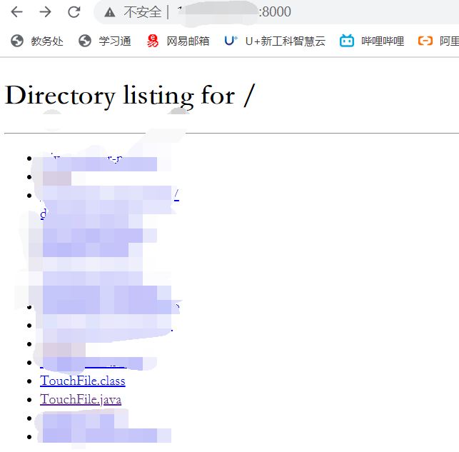 javac TouchFile.java得到TouchFile.class文件,并在将其通过python3 -m http.server命令放到外网环境中,默认监听端口8000。