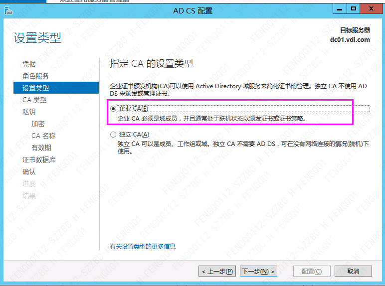 5、选择"企业CA"