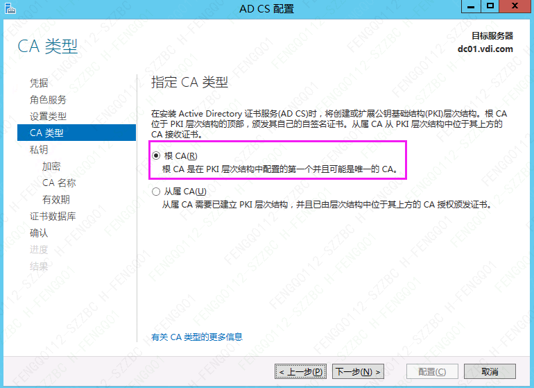 6、选择 ”根CA“