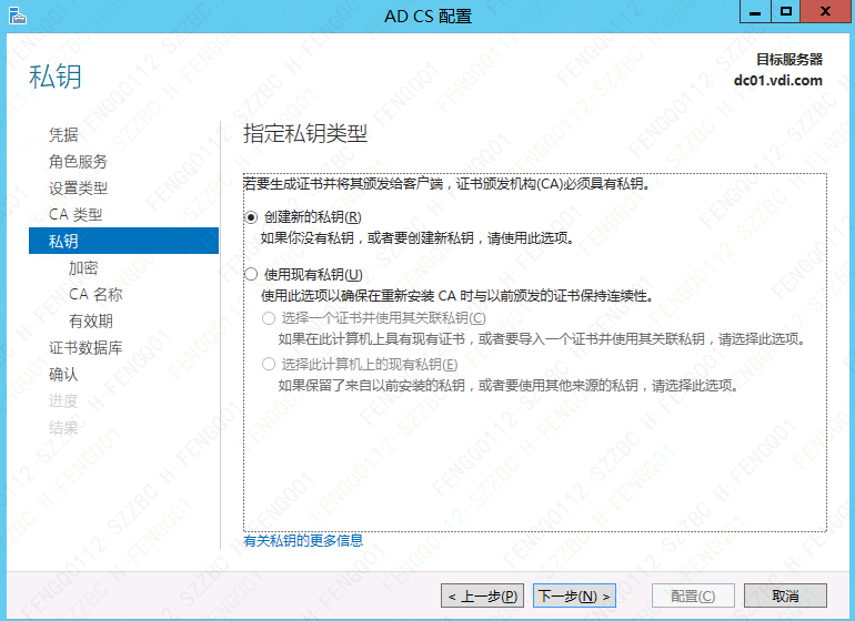 7、选择 ”创建新的私钥“