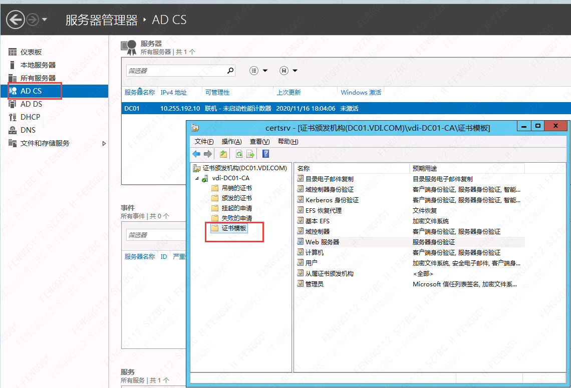12、打开”ADCS“→”证书模板“