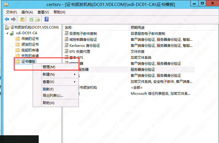 13、选中“证书模板”右键 “管理”