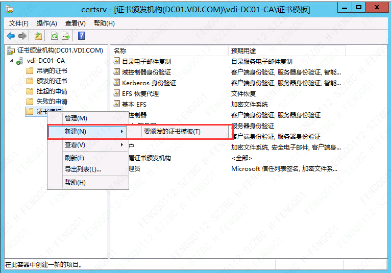 19、返回”证书模板“→右键”新建“→”要颁发的证书模板“