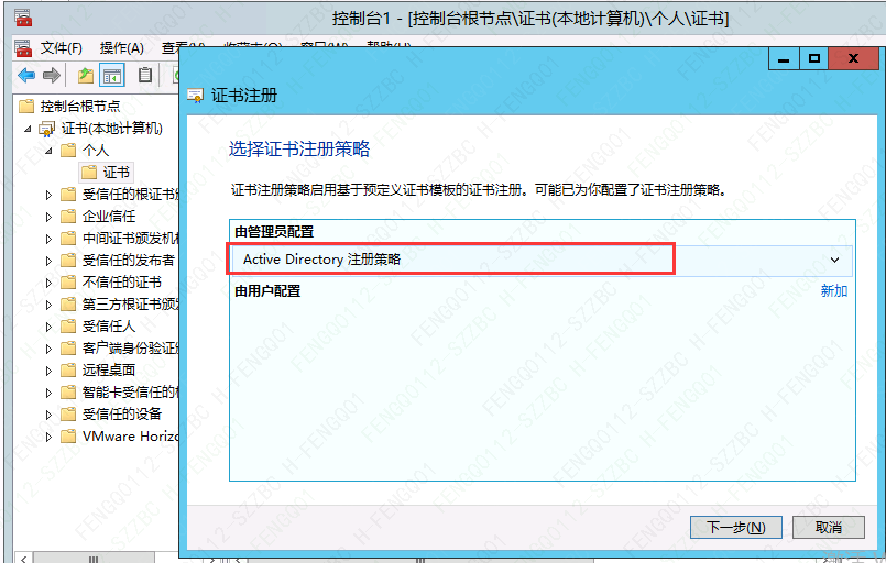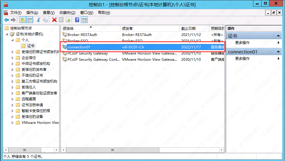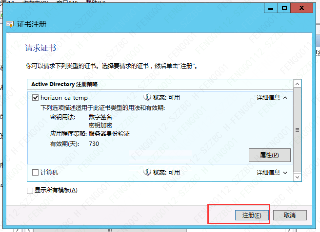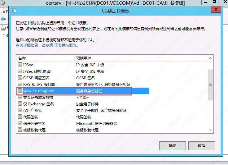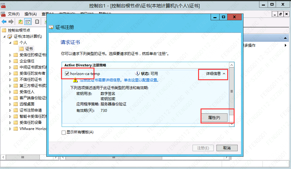 注:添加证书前,需求先重启Connection服务器,同步新建的证书模板。