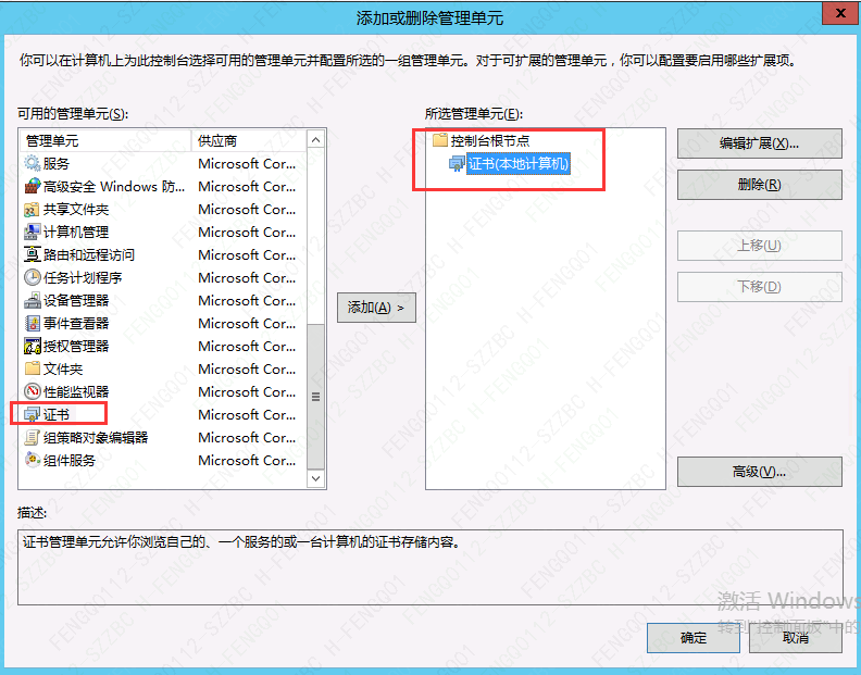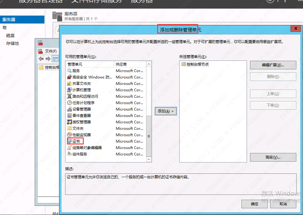 3、选中”证书“点击”添加“