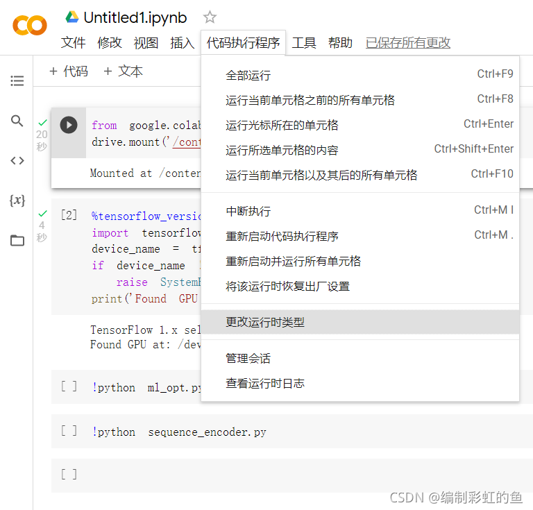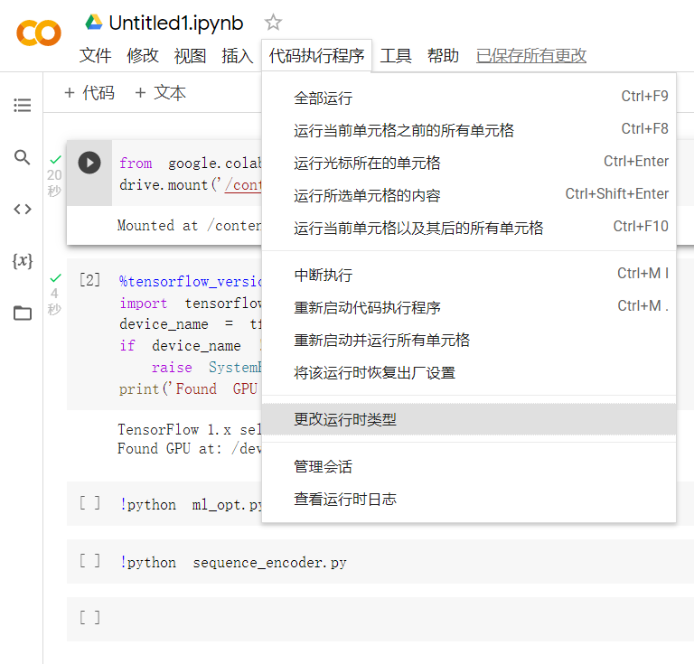 print('Found GPU at: {}'.format(device_name))更改运行目录