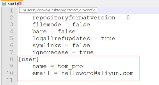 配置开发者姓名及邮箱,每次提交代码时都会把此信息包含到提交的信息中。