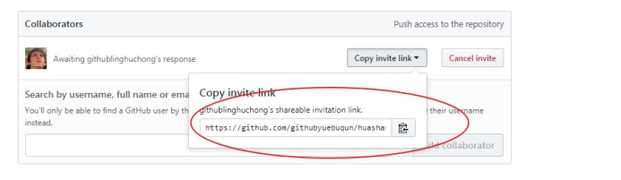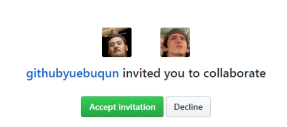 “岳不群”其他方式把邀请连接发送给“令狐冲”,“令狐冲”登录自己的GitHub账号,访问邀请连接,接受邀请