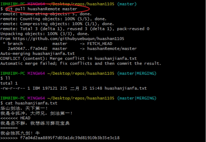 n 拉取下来如果进入冲突状态,模仿分支冲突解决即可