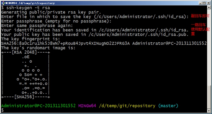 git bash 执行命令,生命公钥和私钥