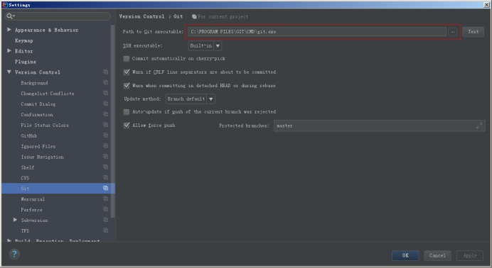 安装好IntelliJ IDEA后,如果Git安装在默认路径下,那么idea会自动找到git的位置,如果更改了Git的安装位置则需要手动配置下Git的路径。