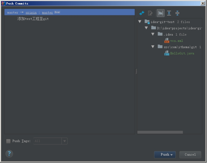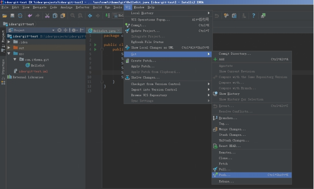 或者在菜单中选择vcs→git→push
