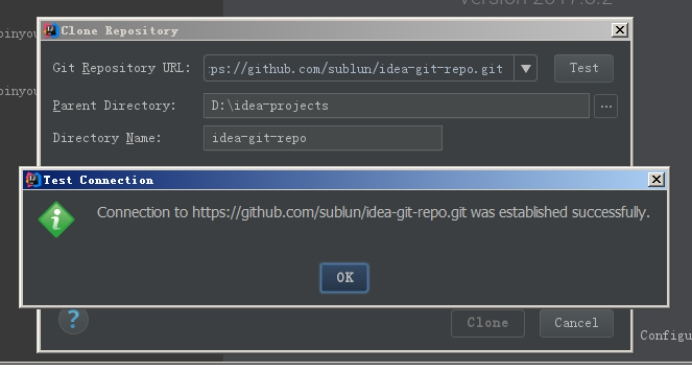 此处仍然推荐使用htts形式的url,点击“test”按钮后显示连接成功。