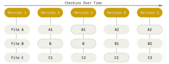 Git把数据看作是小型文件系统的一组快照。每次提交更新时Git都会对当前的全部文件制作一个快照并保存这个快照的索引。为了高效,如果文件没有修改,Git不再重新存储该文件,而是只保留一个连接指向之前存储的文件。所以Git的工作方式可以称之为快照流