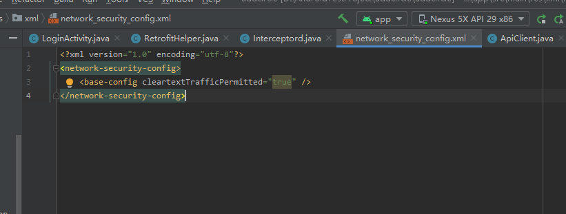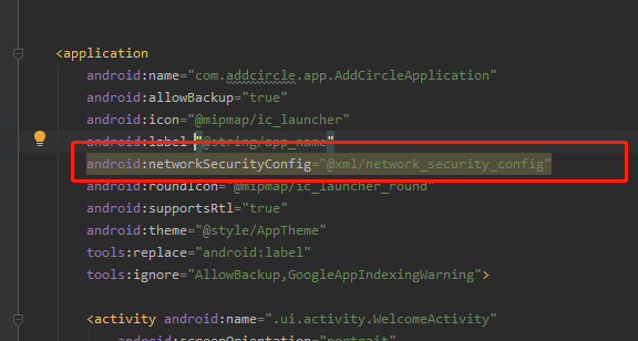 </network-security-config>2,在AndroidManifest文件的application标签节点中配置