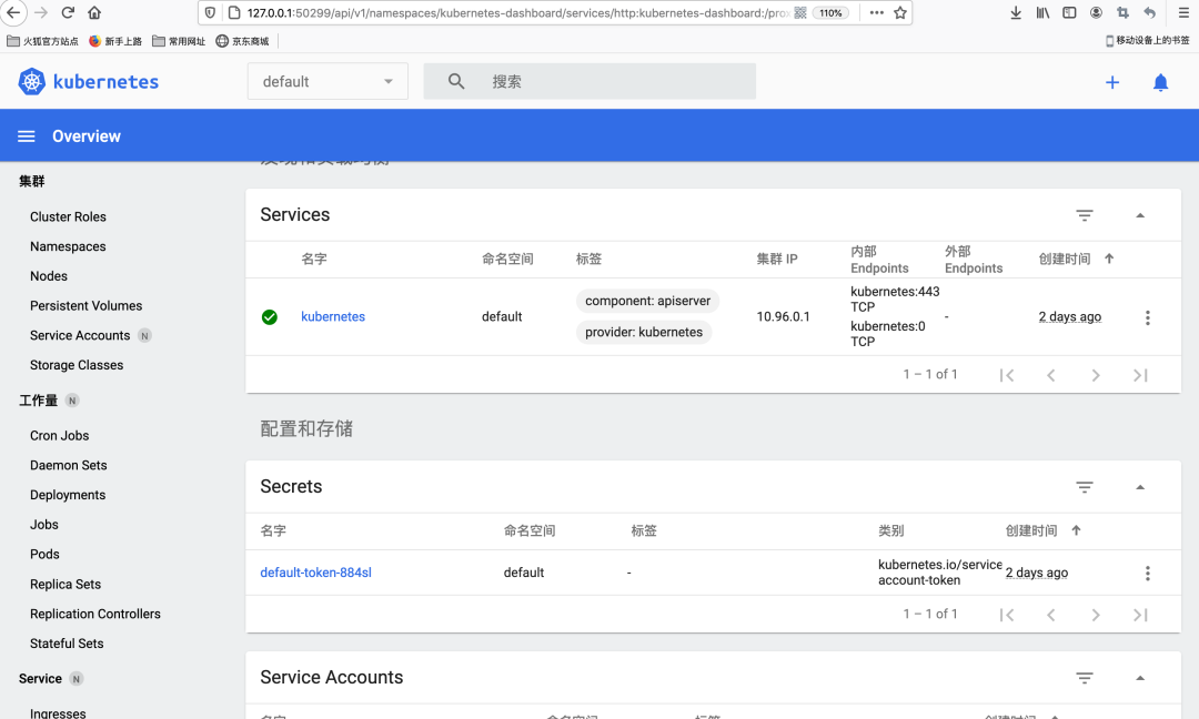 执行完该命令后,minikube会自动在浏览器打开kubernetes dashbord,效果如下: