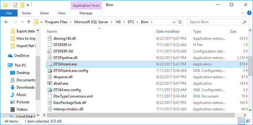 Or, type the following C:\Program Files (x86)\Microsoft SQL Server\140\DTS\Binn DTSWizard.exefor the 32-bit version.