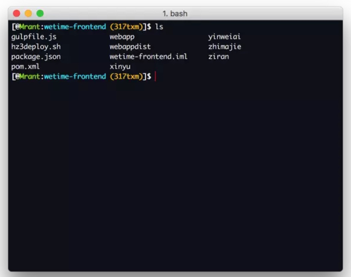 使用了 oh my zsh 的配置以后会有一个默认的配色,也会显示 Git 分支名。如果想要对 Iterm2 进行更多的配置,请点击这里。