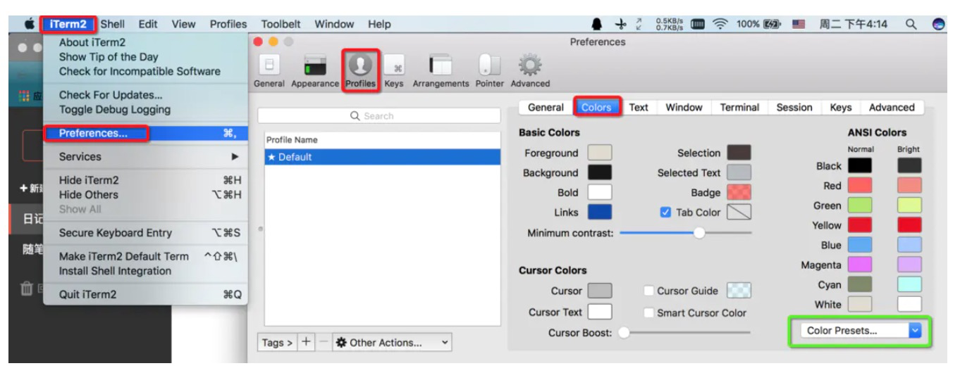 先讲 iterm2 的配色(高亮),再讲 显示Git分支。