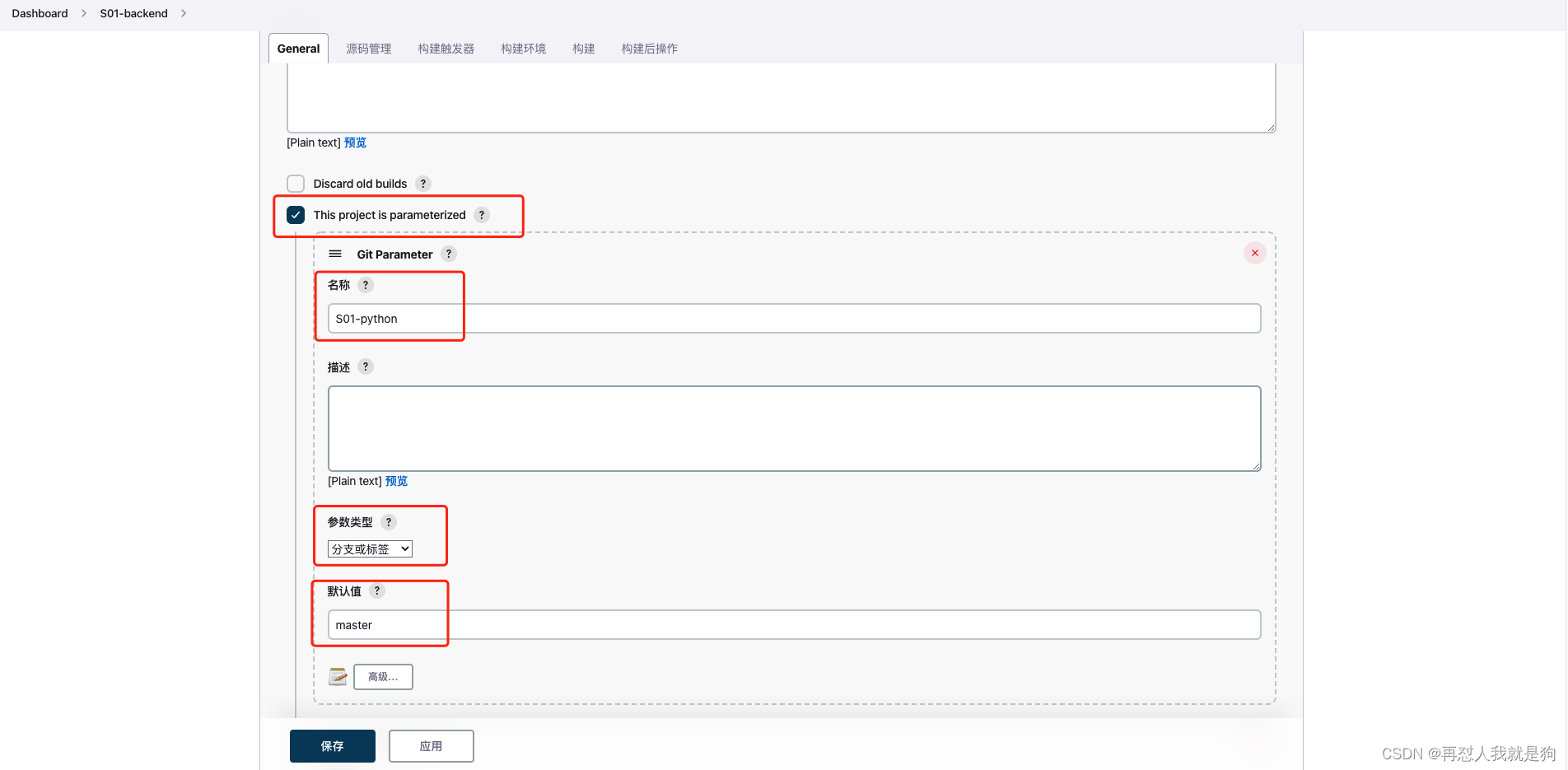 源码管理中,在Branch Specifier指定分支填入刚才的变量名,注意要加$