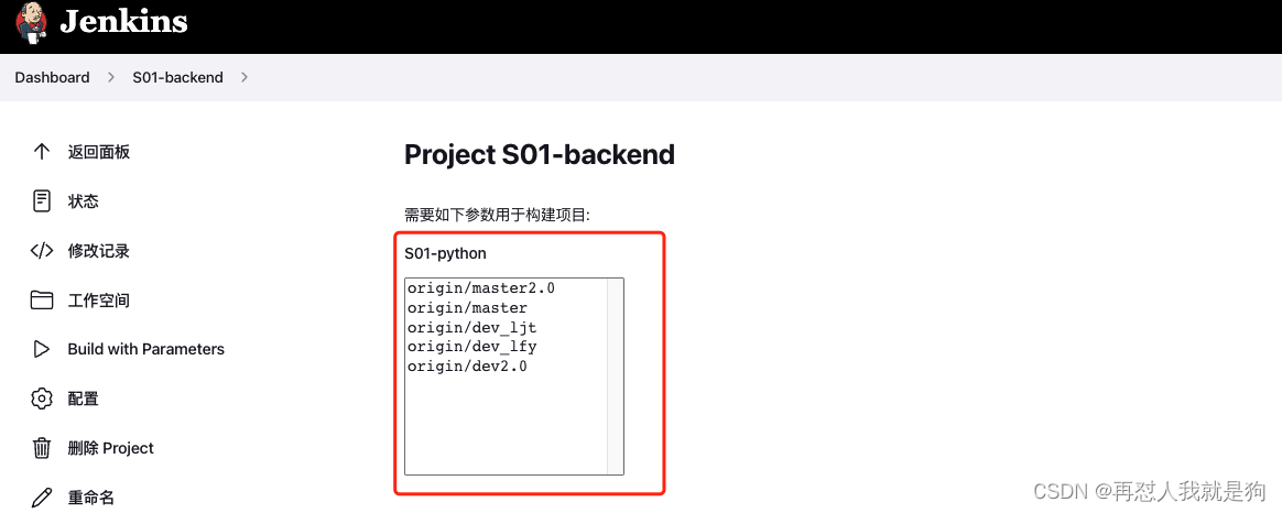 配置完成后,回到项目构建页面,点击build,即可选择分支构建了