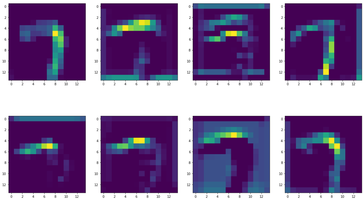 # 打印出第二层的8个特征图,可看出图像的抽象程度更高