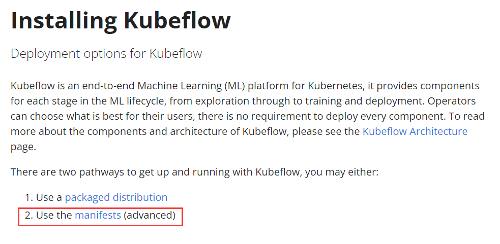 本文主要讲使用manifest(清单) 的方式进行Kubeflow的安装。