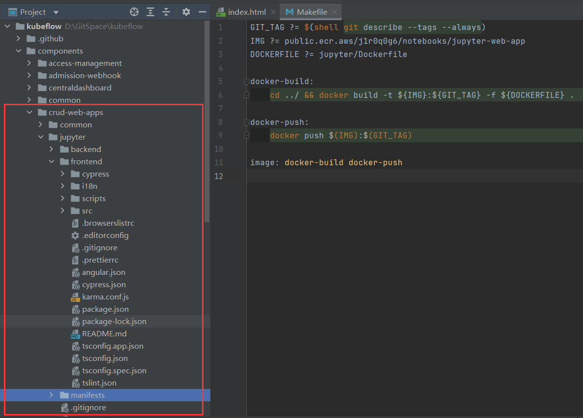 至于怎么找到相应的代码仓库,只能说在 Kubeflow · GitHub 下半猜半推的找吧。最后根据里面Makefile文件的内容就可以确定了。