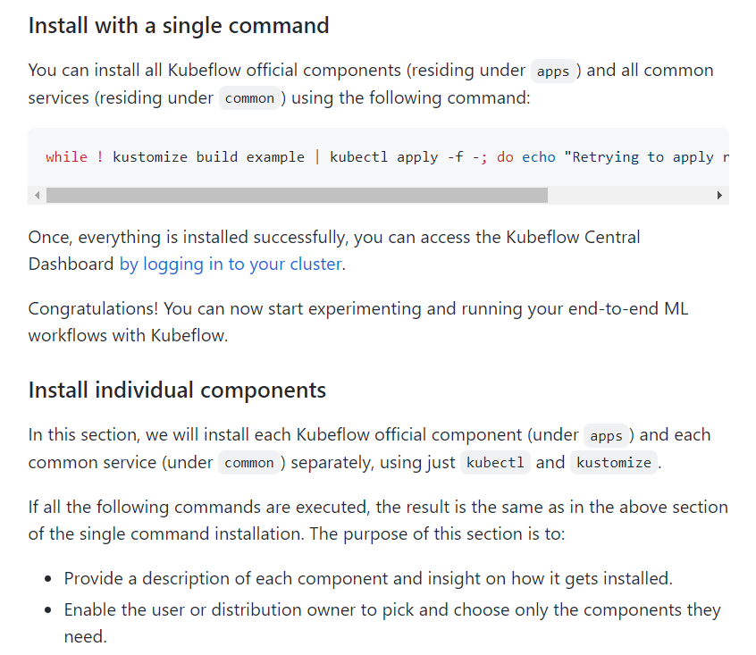官方讲述了两种Kubeflow的安装方式,一种是使用打包发行版本,谷歌云、AWS等厂商的客户可以考虑此方式进行安装使用,应该非常方便。
