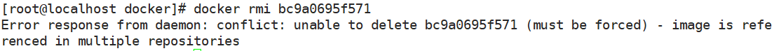 注:删除该镜像时由于镜像id一致,只能选择名称+标签删除,否则会报以下错误
