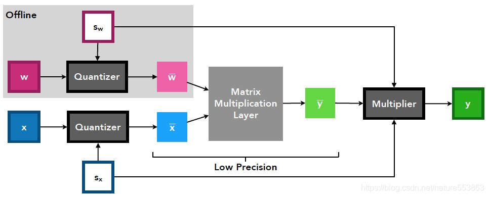 - 另外,针对TensorRT、MNN等推理引擎,Weight通常执行Per-channel量化,Activation执行Per-tensor量化;为了加快量化训练收敛,Activation的量化参数(可训练)可借助KL量化、或PyTorch observer量化予以初始化,Weight的量化参数则根据absmax方法在线更新;