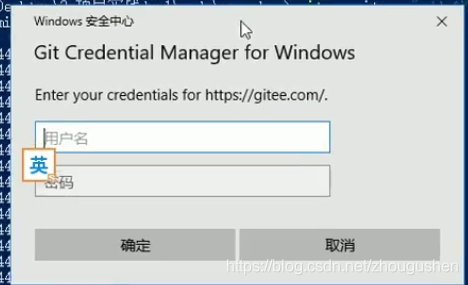 但是你如果是第一次使用码云的话会出现如下情况,这时候你一定要输入正确的码云用户名和密码然后确定。